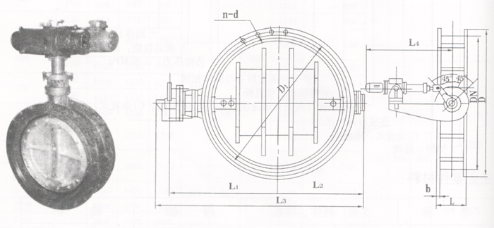 电液动蝶阀以电液推杆作动力源,通过双向齿轮泵轮出压力油,经油路集成块的控制送至油缸,实现活塞杆往复运动,同时通过曲柄转动阀轴、阀板作90°范围旋转,达到调节流量的目的。